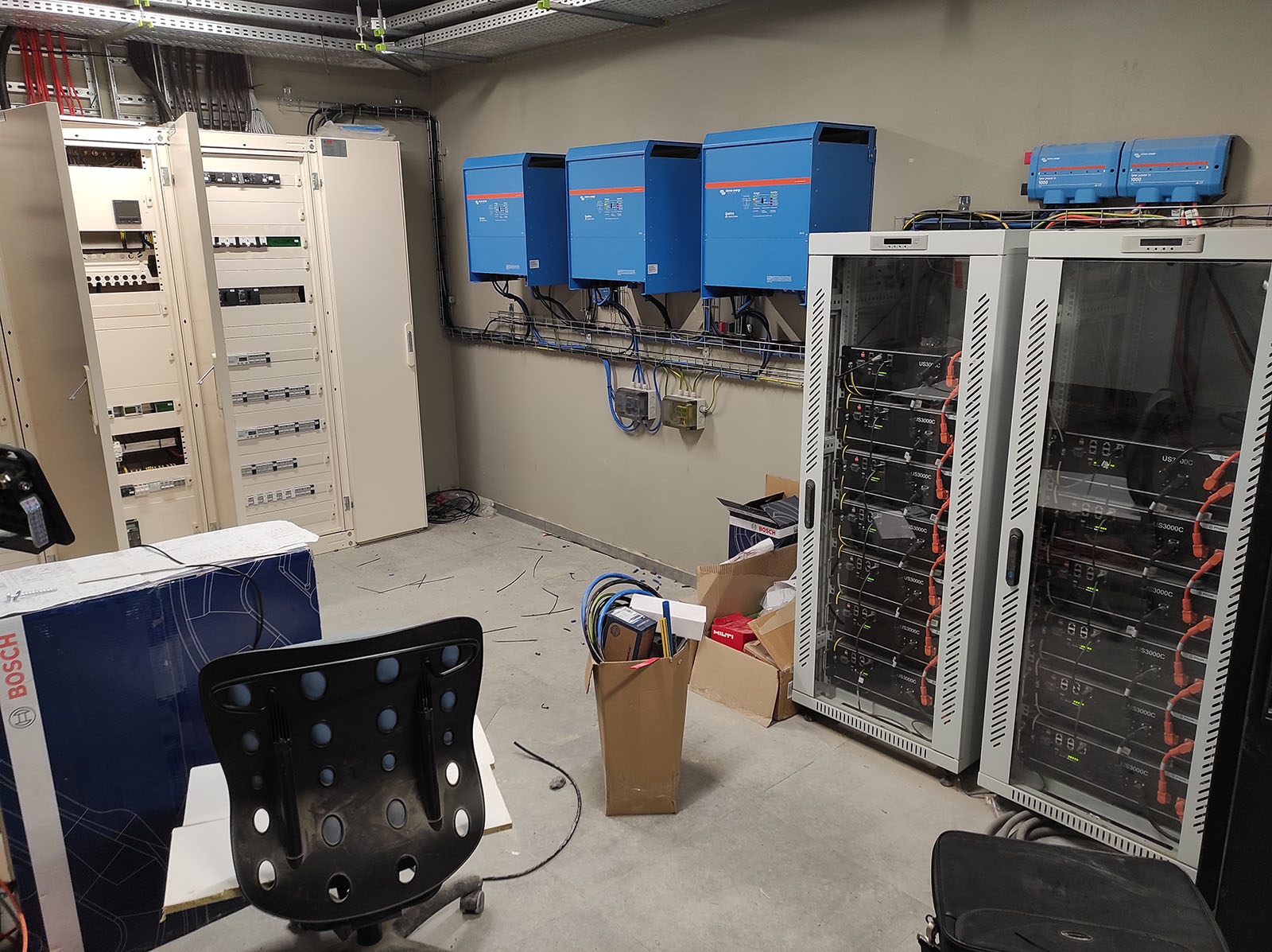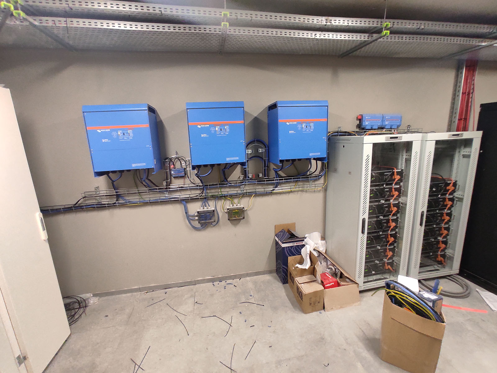 50 kWh energy storage and 3 x 15 kVA Victron Quattro